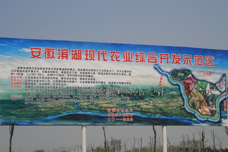 位于合肥市包河区烟墩街道牛角大圩的“安徽滨湖现代农业综合开发示范区”是省政府确定、省财政重点支持的全省六个现代农业示范园之一,面积1.5万亩,以现代农业建设为重点,设置了苗木、花卉、果蔬、种子等8个功能区,自2008年开始引进8家企业进行市场化运作,目前各项建设已初具雏型。“大圩生态农业示范区”被誉为合肥近郊都市里的最美乡村,该示范区采取政府扶持、农民自建等方式,重点发展以果蔬采摘、休闲垂钓等“农家乐”为主的项目,受到了合肥市民的青睐。