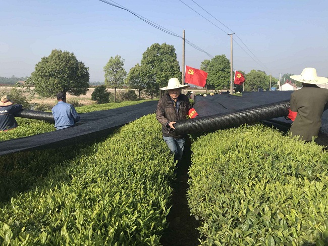 4月19日,十字铺茶场一分场、前郎居委会党支部开展党员活动日一线帮扶活动,帮助承租户覆盖茶树遮阴网。党员们清晨来到茶园,立即投入劳动,一直持续到中午。场党委要求,各党支部要围绕茶业改革发展,把基层党建同生产经营深度融合,确保取得“围绕发展抓党建、抓好党建促发展”的实际成效。