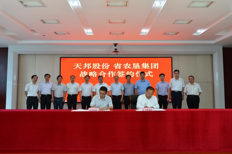 为充分发挥国有企业和农业产业化企业在稳定生猪生产、保障市场供给中的示范带头作用,积极打造生猪养殖全产业链,加快建设长三角绿色农产品生产加工供应基地,7月1日上午,安徽农垦集团与天邦食品股份公司战略合作框架协议签订仪式在合肥举行。省农垦集团党委书记、董事长詹先豪,天邦股份董事长张邦辉出席签约仪式。农垦集团党委副书记王良贵主持签约仪式。
