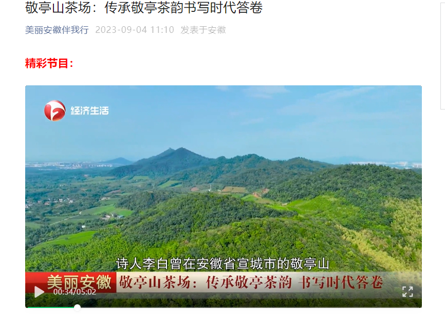 安徽经济生活频道播出《敬亭山茶场:传承敬亭茶韵书写时代答卷》