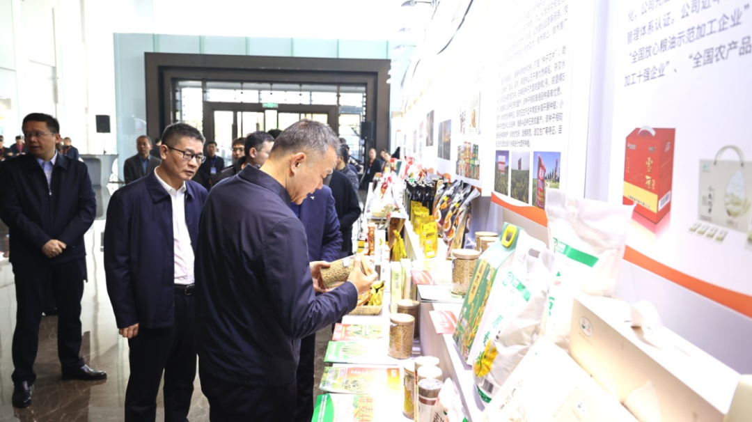 与会人员参观怀远糯稻产品。