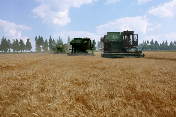 在现场了解午收工作情况的省政府小麦高产攻关领导小组副组长胡承霖说:农垦系统一向是走在前面的,所以小麦高产攻关各场都制定有方案。按我所了解,农场的产量水平比我们大面积的生产一般平均要高出200市斤,有的场象夹沟农场更高一些。农场不单是在产量提高上给我们全省带了个头,同时也指导了周边老百姓的种地增产增收,而且更重要的是农场繁育的种子都是我们大面积生产用种,对全省大面积生产就起到了良好的基础作用。