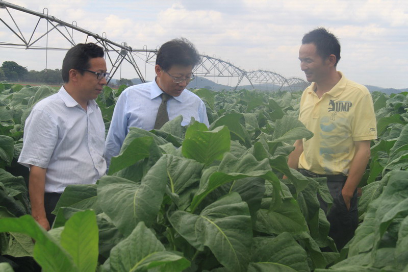 在奥姆斯坦农场,韩兵参赞听取霍炳宏场长介绍了烟草种植规模、技术措施、质量控制、产品销售等情况,听到今年一期烟叶每公顷产量可达3吨、二期已完成育苗移栽时,他非常高兴,表示愿意引荐中烟集团加入合作。在琪强砖厂,韩兵参赞重点了解了砖坯生产工艺与质量、用工及当地市场行情,他希望砖厂注重环境保护、尽快打开销售局面,为中国在津企业做出示范。(董如平