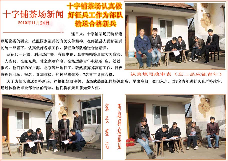 十字铺茶场认真做好征兵工作为部队输送合格新兵