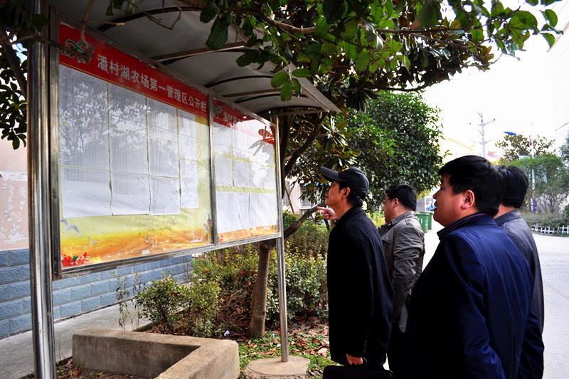 通过看现场、听汇报、查资料,检查组一行认为,潘村湖农场作为安徽省厂务公开工作先进单位和滁州市厂务公开工作示范单位,场务公开民主管理工作程序规范、内容丰富、形式多样、成效显著,许多做法和经验值得学习推广。(杨登宏)