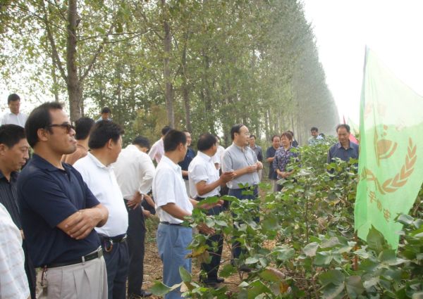 9月16日上午,省农垦皖河农场三益回民分场棉农斯中军的棉田里人头攒动,煞是热闹,原来这里正在举行棉花良种补贴中标品种现场会,来自省城合肥的省农委领导、省种子管理站负责同志以及安庆、池州等市、县农口单位和江苏供种单位负责人一行50多人参加了田头现场会。